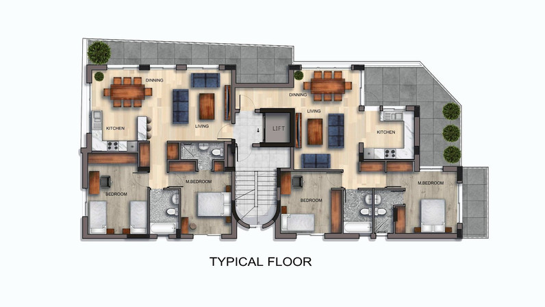 - Alarm system in each apartment.